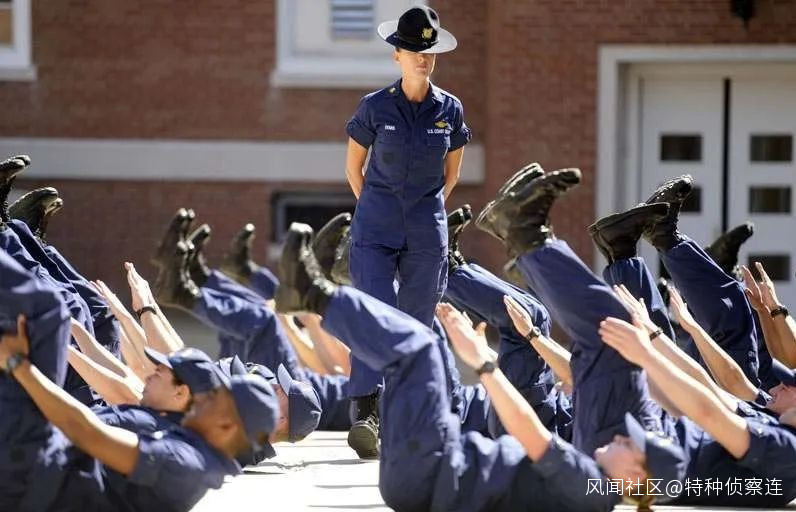 雖然海岸警衞隊和海軍在性質上相似,但他們的新兵訓練營真的不太一樣。這是一種完全不同的體驗。培訓內容有武器訓練、水手訓練:打各種繩索、繩結的、防火、甲板維護和在船上部署的其他方面的實踐訓練。學員還會學習軍銜和部隊知識,通過游泳評估、格鬥,理論課考試。這裏是唯一一個沒有“毒氣室”項目的新兵訓練營。