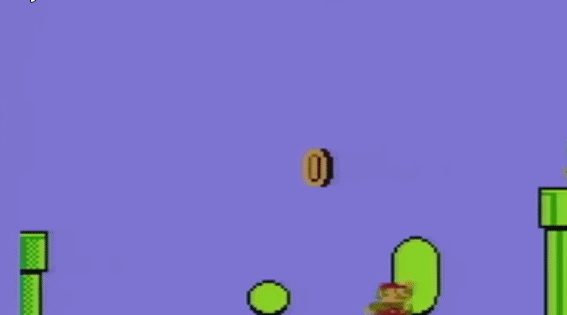 下圖的跳躍,馬里奧明明碰到了食人花,但是沒事兒。