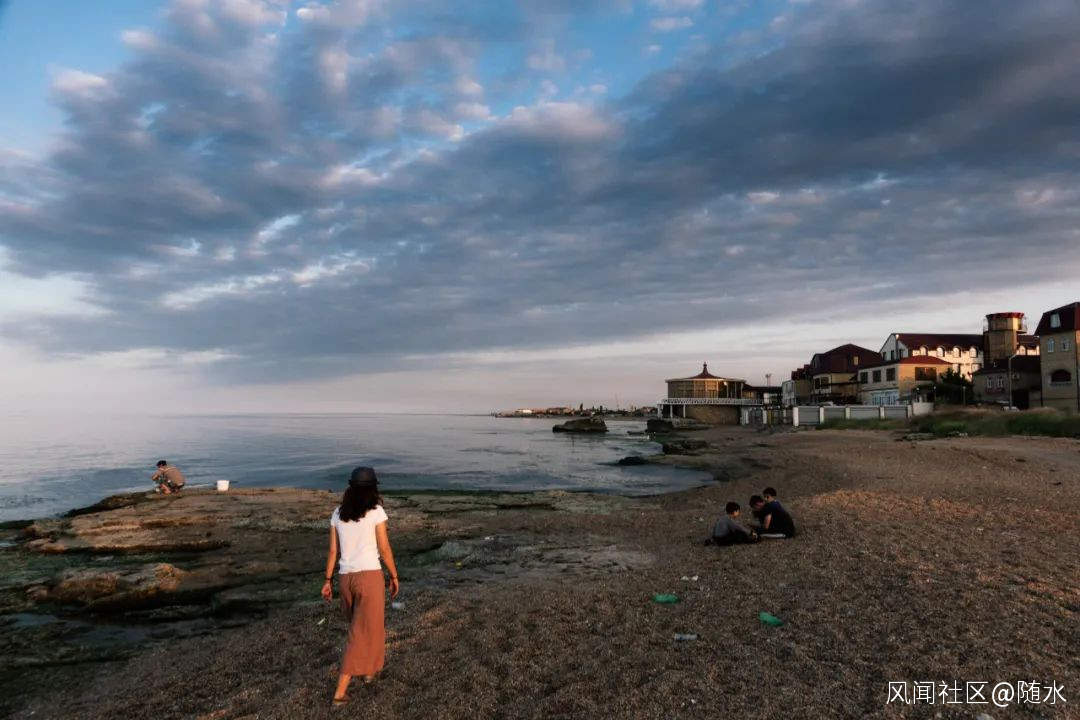 傍晚在裏海邊休閒的當地人