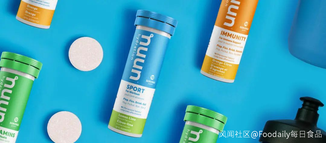 雀巢旗下品牌Nuun開發的電解質泡騰片,在水中的溶解時間較常規產品縮短一半,一管含10片,攜帶輕巧方便,是目前美國市場佔率最高的電解質補充飲品。