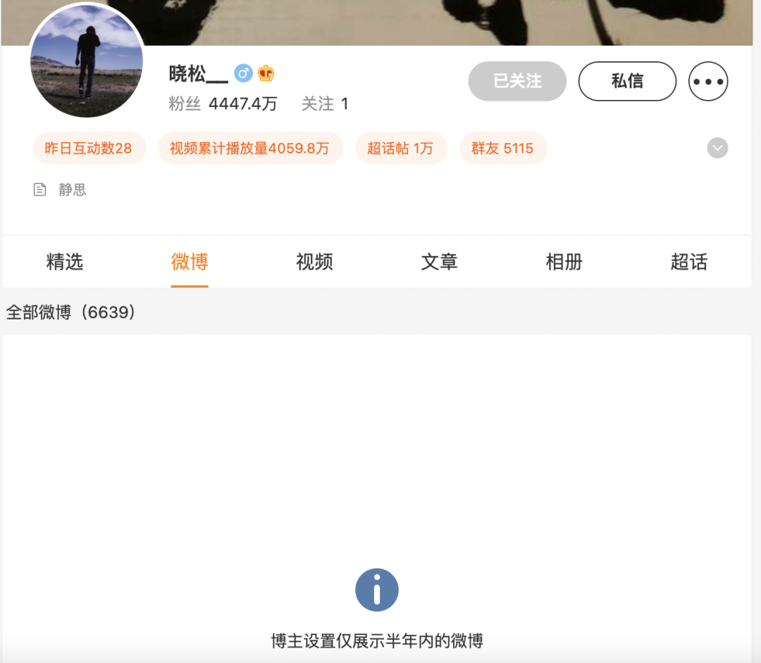 30 年前因為一首《同桌的你》風靡中國,今年 53 歲的高曉松在微博上依然有着 4417 萬粉絲,不過已設置半年可見,顯示 0 條微博。