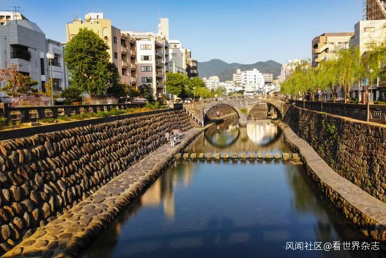 在長崎,這條小河以河面上一組17世紀的古橋羣聞名,這些早期石橋的修建者多來自中國。