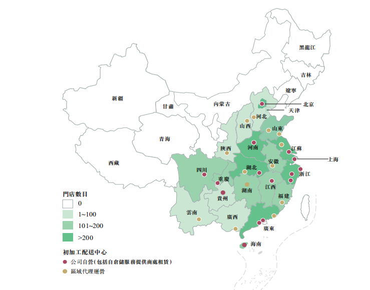 百果園門店網絡及配送中心