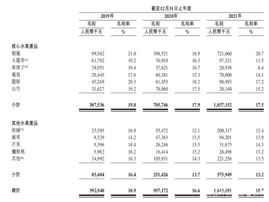 洪九果品水果毛利及毛利率