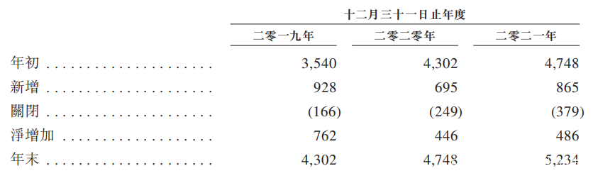 百果園2019-2021年加盟門店數量增減情況