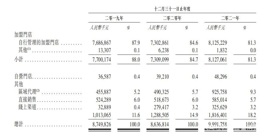 百果園各銷售渠道收入明細