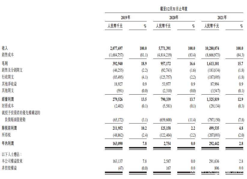 百果園2019-2021年財務數據