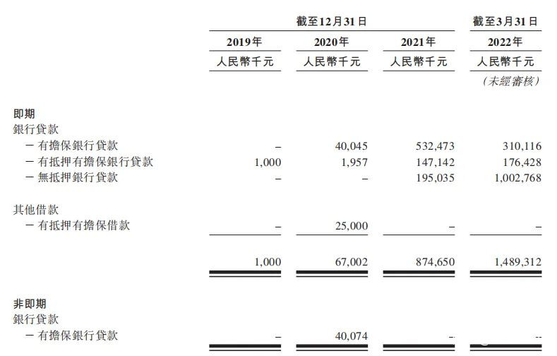 洪九果品2019-2022年(截至3月31日)銀行貸款