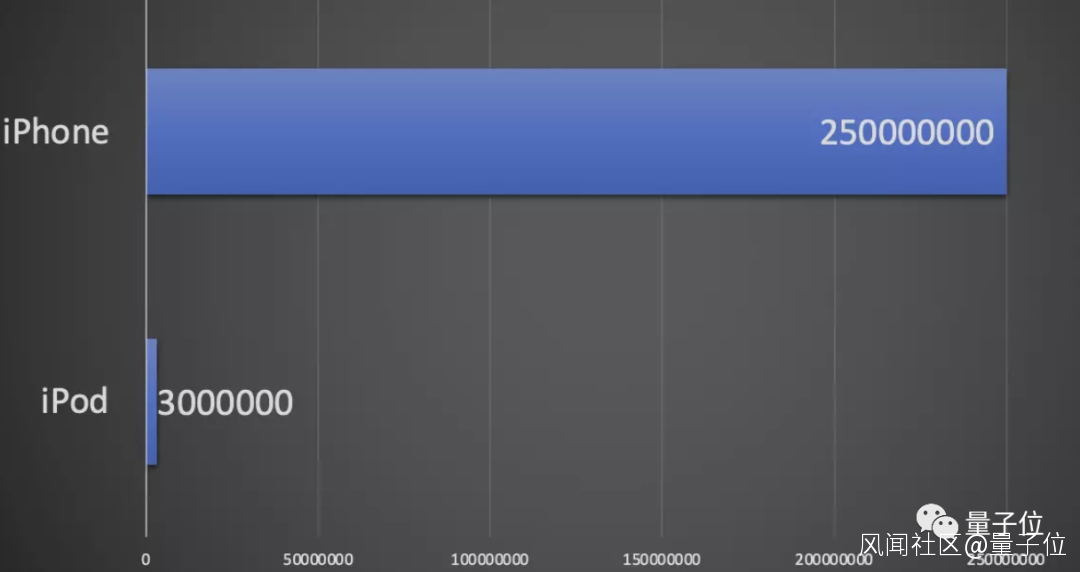 例如蘋果在去年賣出的iPod大約是300萬台,而iPhone的銷量卻高達2.5億台。