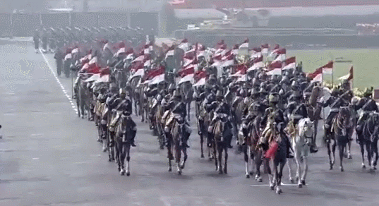 如今還保持着騎兵閲兵的國家已經不多了,印度就是其中的一個,不僅有馬匹,還有駱駝、大象,甚至還有狗。