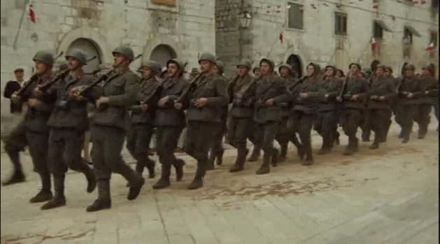 ▲國家形象大損《第26個畫面裏的佔領》中惡搞意大利閲兵