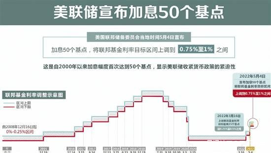 果然,5月4日,美國聯邦儲備委員會宣佈加息50個基點,創下美聯儲2000年以來單次加息最大幅度。