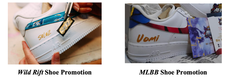 例如此前《英雄聯盟手遊》曾在2020年10月推出“定製耐克球鞋”的活動,而在2021年3月《無盡對決》也發佈了類似內容,包括字體顏色、字體位置都如出一轍。