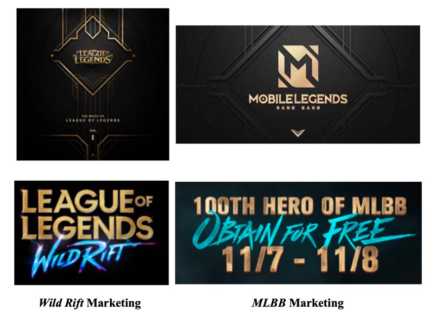 甚至拳頭公司控訴,沐瞳科技還抄襲了《英雄聯盟》的遊戲Logo,包括相同的佈局、突出單詞“LEGENDS”,和同樣使用金色字體。