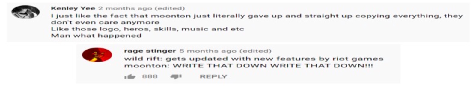 拳頭公司更是控訴,沐瞳科技所公佈的英雄預告片存在大量明顯抄襲痕跡,包括顏色、角色、鏡頭等。