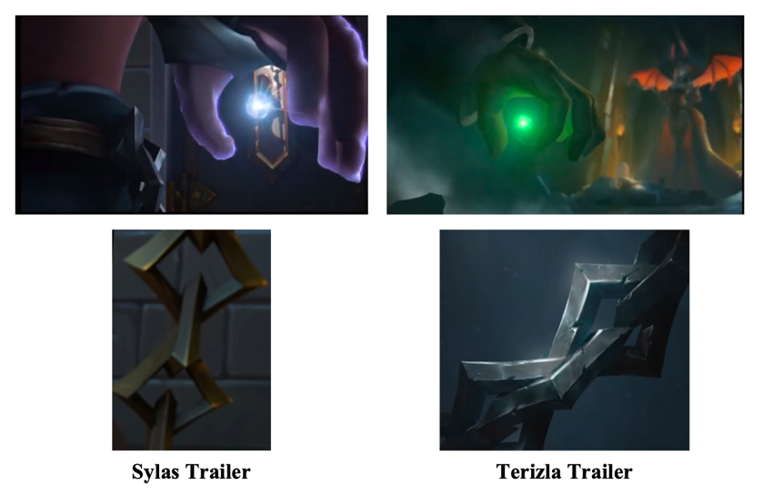 左:《英雄聯盟》英雄塞拉斯預告片;右:《無盡對決》英雄Terizla預告片
