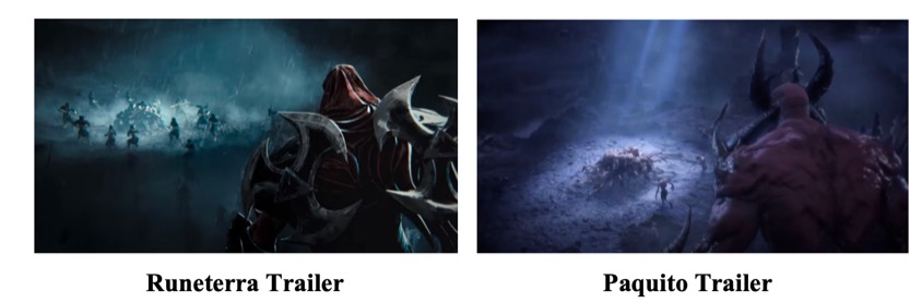 左:卡牌遊戲《符文之地》預告片;右:《無盡對決》英雄Paquito預告片