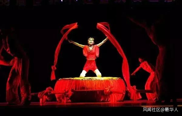 就這樣苦練了一個月後,廖智在比賽當晚的舞台中央,以一襲紅衣舞裙,跪立於一面直徑2米、高1米的紅色大鼓之上。