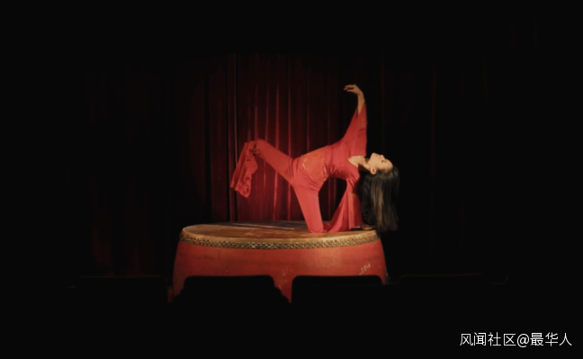 她雙手舉起,奮力敲鼓。沒有曾經的裙裾飛揚,卻只見她堅毅的臉龐,與揮動的鼓槌;沒有雙腿,她卻振動羽翼,鶴鳴九皋……