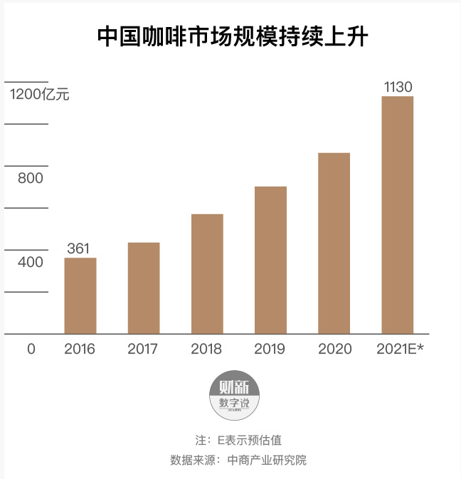 現在的咖啡市場上,消費者已經接受了教育,咖啡市場規模逐年加大。產業諮詢機構中商產業研究院統計,2020年中國咖啡市場規模為861億元,預計2021年漲幅將與2018年基本持平,上升三成左右,總規模或達1130億元。