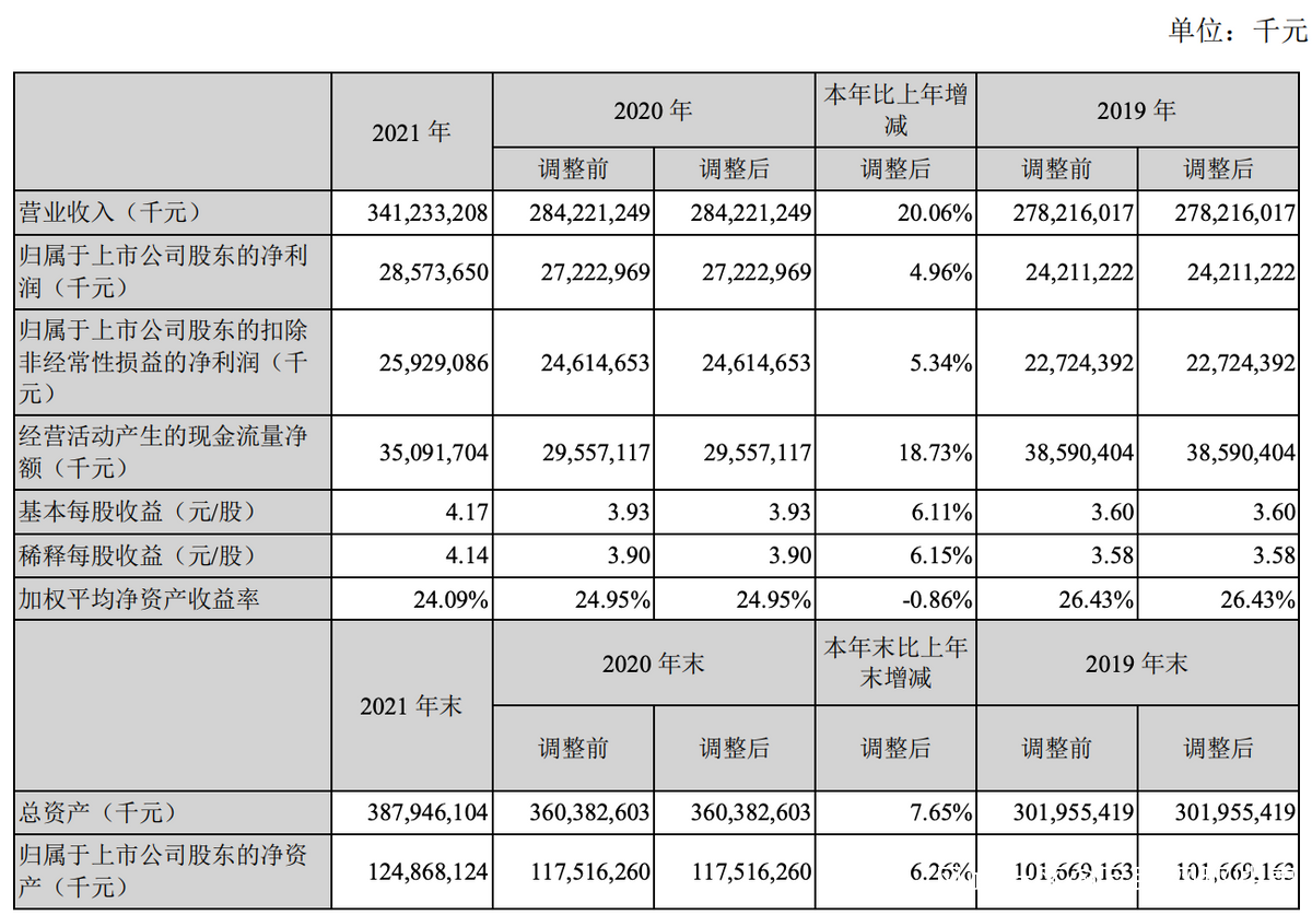 根據美的集團發佈的2021年財報顯示,其營收為3412億元,同比增長20.06%;實現淨利為285.74億元,同比增長4.96%;扣非後淨利為259.29億元,同比增長5.34%。