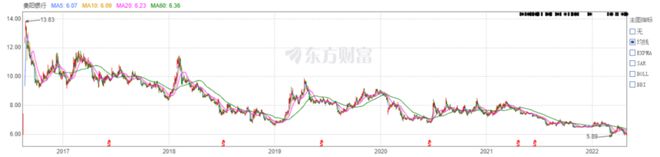 公開信息顯示,貴陽銀行的每股發行價為8.49元。自2016年上市以來,貴陽銀行的股價總體保持下行態勢,3月16日出現歷史最低價5.89元/股。5月10日,貴陽銀行收盤價為6.06元/股。