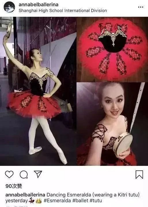 9歲那年,她迷上了芭蕾舞,開始參加國內外的專業芭蕾舞集訓。她習慣擺拍芭蕾Pose照,她形容自己“一條腿永遠在天上”。