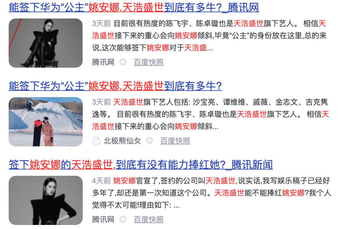 在姚安娜簽約天浩盛世時,主流輿論不是“姚安娜好厲害,簽約了國內前十的經紀公司”,而是“天浩盛世很牛,居然簽到了姚安娜”。