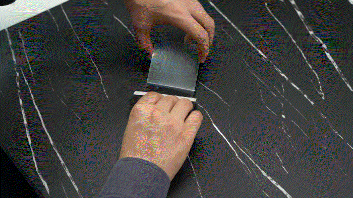 取下來的膜一共分為三層,最下面一層和最上面一層到時候都要被揭掉,只有中間這一層才是真正需要貼到手機屏幕上的膜。