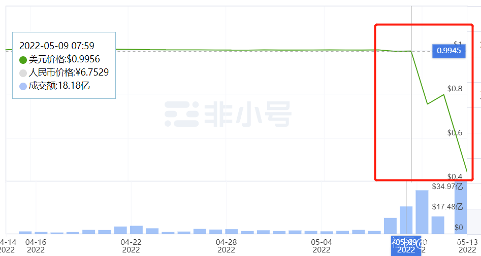 短時間的大量拋售,讓 UST 穩定的價格逐漸被砸的低於了 1 美元。