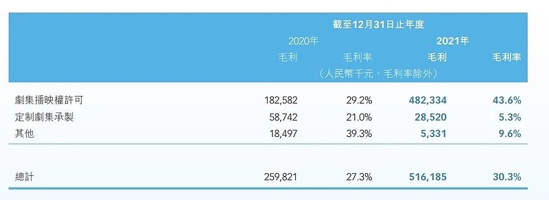 2021年公司共播出包括《前行者》、《我的砍價女王》在內的15部劇集,較上年增加6部,劇集數量增長直接推動公司由劇集播映許可產生的收入增加77.1%,達到11.07億元。