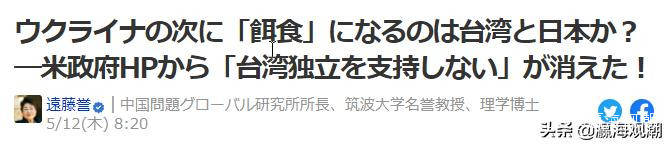 日本評論家遠藤譽指出,美國政府網站刪除一直以來的有關台灣問題的表述,是要複製以烏克蘭遏制俄羅斯的套路,把台灣問題當做遏制中國發展的手段,逼迫北京出手,順便把日本也推進戰火。