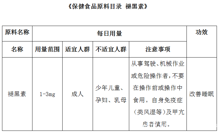 我國的保健食品原料目錄中,褪黑素的建議用量是1~3mg/d,同時規定了適宜人羣、不適宜人羣、注意事項等;褪黑素在英國是一種處方藥。