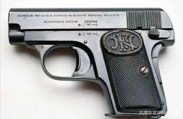 這其實一支勃朗寧FN1906手槍,早在一百年前就面世了,是現代袖珍自動手槍的典範。在1904年,著名槍械設計師勃朗寧設計了一款微型手槍,推銷給美國柯爾特槍械製造公司,可是柯爾特公司高層認為該槍結構過於複雜而沒有采用。於是勃朗寧將這款微型手槍推薦給了比利時的FN公司,在1905年完善成功了這一款半自動微型手槍,定型為M1906半自動微型手槍。
