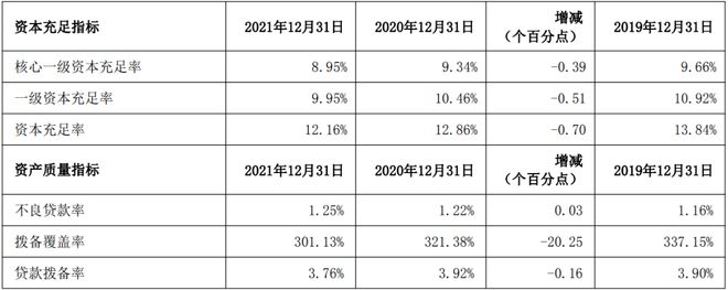 數據顯示,截至2021年末,上海銀行資本充足率為12.16%,一級資本充足率為9.95%,核心一級資本充足率為8.95%,分別較2020年末下降0.70、0.51、0.39個百分點,三項指標均出現不同程度下滑。