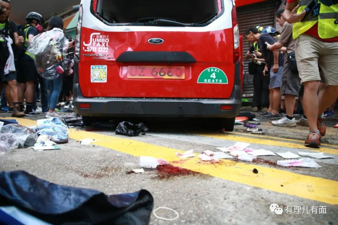 同時黑暴大肆破壞其的士,包括用石頭等打砸車身、擊碎玻璃窗。