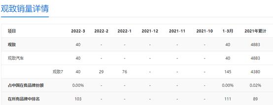 而根據太平洋汽車網所統計的數據,觀致近乎於從中國汽車品牌上要除名。