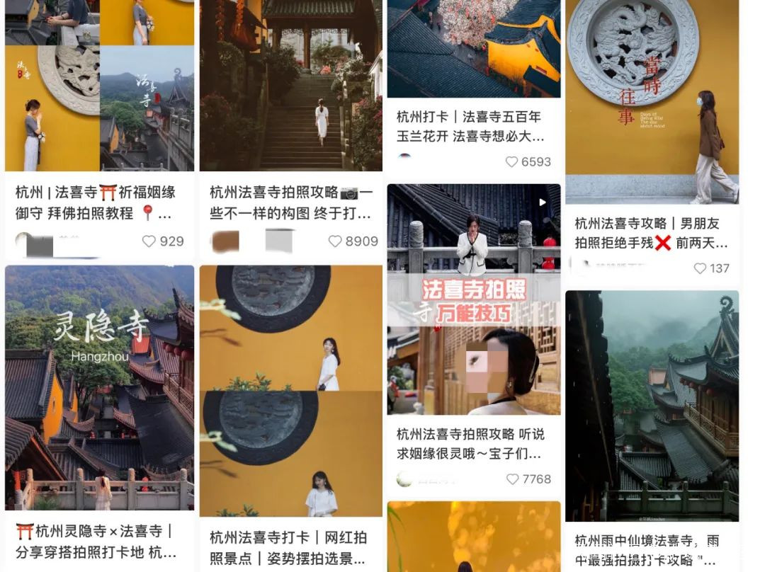 還有這兩年迅速躥紅的杭州法喜寺,因為拍照打卡出圈,不論在旅遊旺季還是淡季,每天的預約人數都遙遙領先。