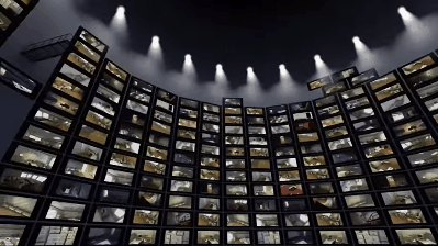 一開始,視頻的視角就從辦公室的窗户掉進了外面的世界,一片白茫茫,沒有模型也沒有貼圖的地方。