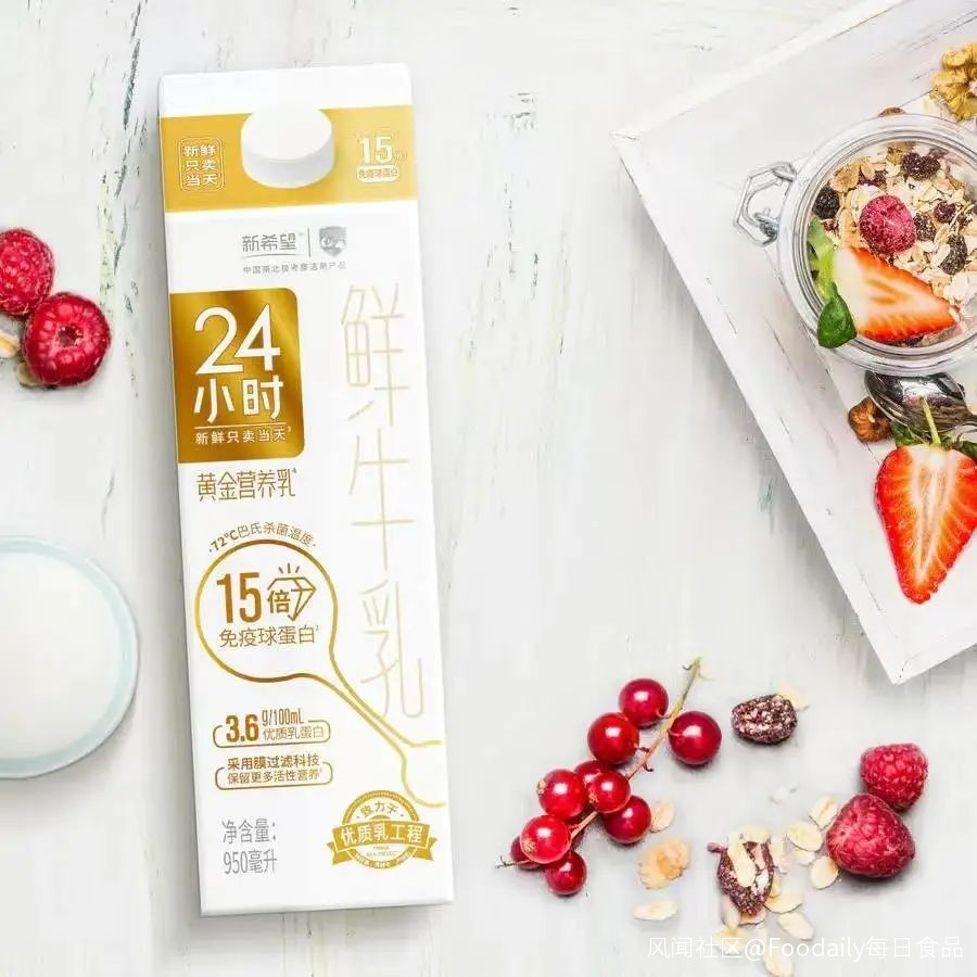 5月8日,新希望旗下品牌白帝推出一款24小時鮮牛乳,宣稱只賣當天,從上市到下架不超過24小時,從時間維度上定義新鮮牛奶。新品採用膜過濾科技與72°C巴氏殺菌工藝,保留更多鮮活營養,每100ml含3.6優質乳蛋白,免疫球蛋白是普通鮮奶的15倍,帶來黃金營養。新品共有200mL、950mL兩種規格,可在白帝訂奶官方商城訂購。