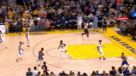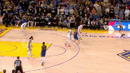 不過,追夢弧頂發牌的回合,G6變少了。事實上,他少有地經常站了底角。勇士吸取了G4便秘, G5慘敗的教訓,做了更有針對性的比賽策略,開場就能看出兩點: