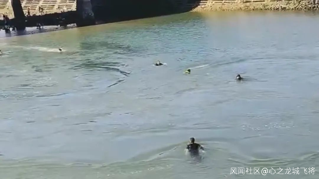 這時,有3名男子從不同的地點下河,最終一男子成功靠近孩子,並將其拖上岸。“當時太驚險了,孩子被救起也太萬幸了。”