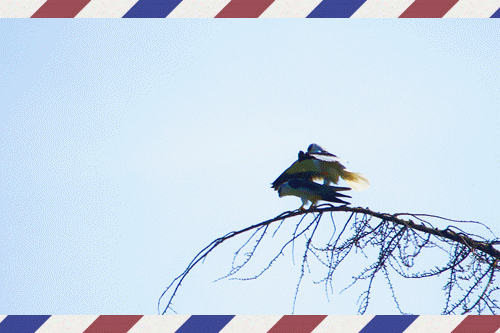 儀式結束後,小夥子沒有馬上離開姑娘。兩隻黑翅鳶悠然地站在枝頭,二鳥含情脈脈地回頭對望。