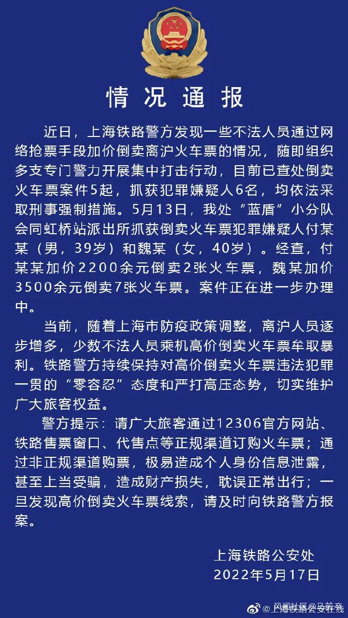 上海鐵路警方查處5起倒賣火車票案件,有人加價兩三千