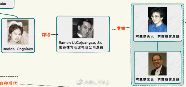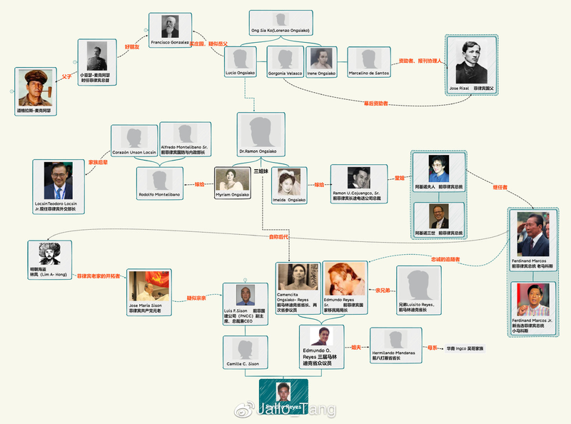 值得玩味的是,球員桑德羅的爺爺老埃德蒙德·雷耶斯追隨的獨裁者費爾南德-馬科斯在政變下台後,繼任者正是阿基諾夫人。或許對於拉蒙·王(Dr. Ramon Ongsiako)博士來説,這或許是他人生中最最重要的一筆投資,**而當時的菲律賓政壇也無非是他兩個女婿背後所代表的政治集團的左右互搏。**但顯然,這也不過是王沙哥家族在僅130年間,以極其靜默的方式參與到了菲律賓頂級政壇博弈中的一個縮影,他們先後觸達了五位國家元首,而這僅僅是我們通過公開資料推導出的結果,可能遠遠不如那些幕後的真相更讓人吃驚。