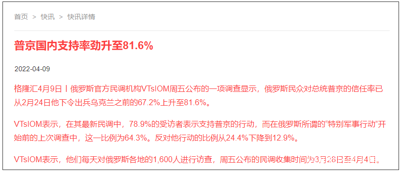 大家一定要記住一點:俄羅斯國內支持對格魯吉亞和烏克蘭戰爭的比例非常高,原因就在於:這涉及到俄羅斯人的尊嚴——俄烏戰爭開打以後,普京支持率由67.2%飆升到81.6%。