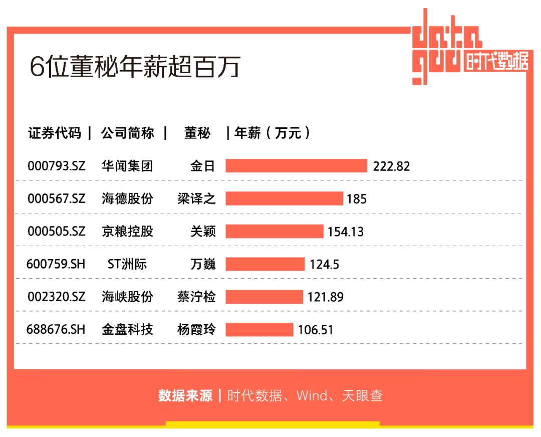 6位董秘年薪超百萬