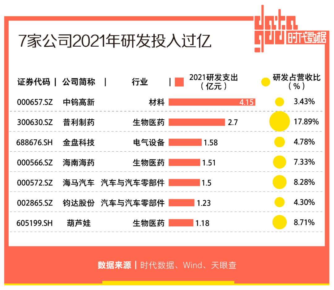 7家公司去年研發投入過億