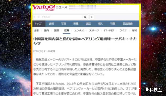 日本椿中島/TSUBAKI NAKASHIMA被爆出購買了中國軸承鋼球產品,偽裝成日本國產鋼球產品出售。椿中島自己也承認,因為自己的產品產量不足,所以故意採購中國鋼球偽裝成日本產品出售。椿中島還表示,中國精密鋼球符合客户要求的標準,安全性沒有影響,沒聽到客户方面的異議。