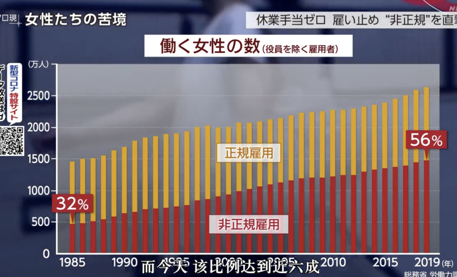疫情期間,日本大量的非正式員工被裁,其中70%都是女性。